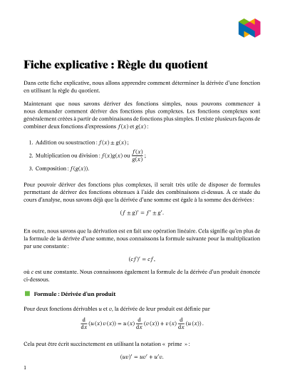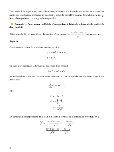 Dans cette leçon, nous allons apprendre comment déterminer la dérivée d'une fonction en utilisant la règle du quotient.