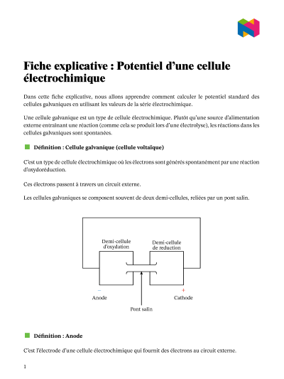 Dans cette leçon, nous allons apprendre comment calculer le potentiel standard des cellules galvaniques en utilisant les valeurs de la série électrochimique.