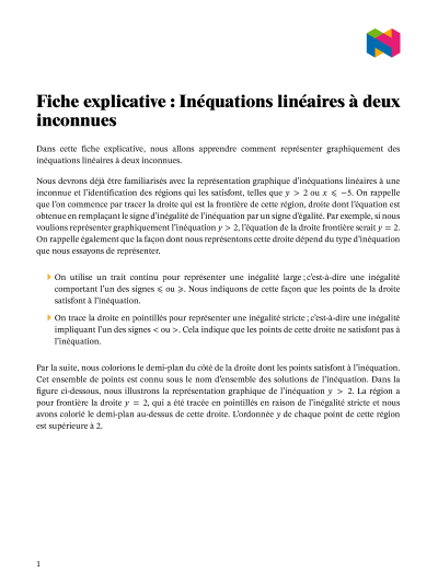 Dans cette leçon, nous allons apprendre comment représenter graphiquement des inéquations linéaires à deux inconnues.