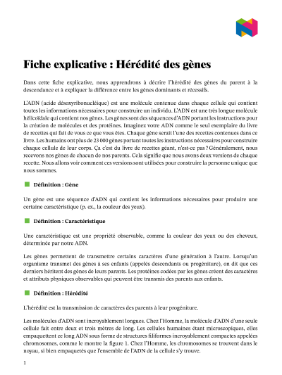 Dans cette leçon, nous allons apprendre comment décrire l’hérédité des gènes du parent à la progéniture, et expliquer la différence entre les gènes dominants et récessifs.