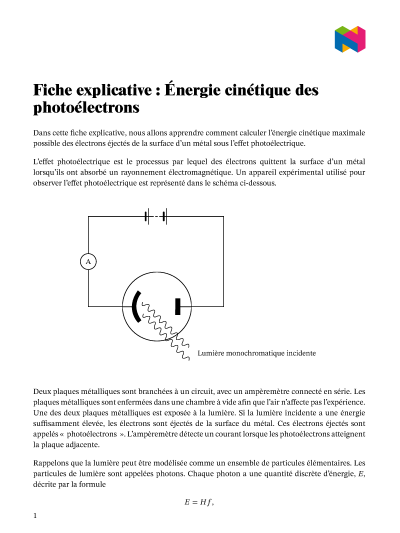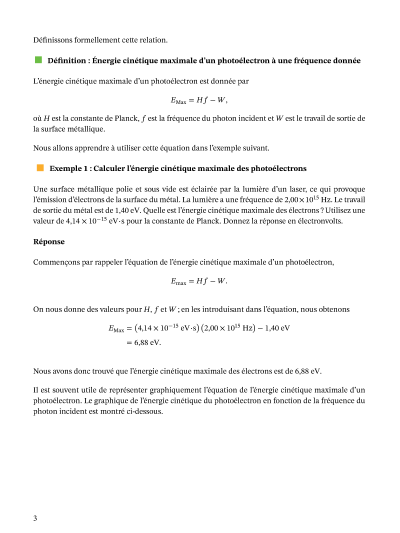 Dans cette leçon, nous allons apprendre comment calculer l'énergie cinétique maximale possible des électrons éjectés de la surface d'un métal sous l'effet photoélectrique.