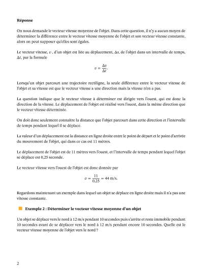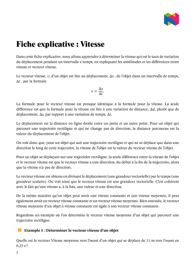 Dans cette leçon, nous allons apprendre comment trouver le vecteur vitesse comme taux de variation du déplacement, en expliquant les similitudes et les différences entre la vitesse et le vecteur vitesse.