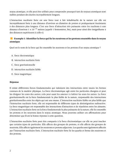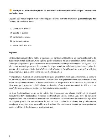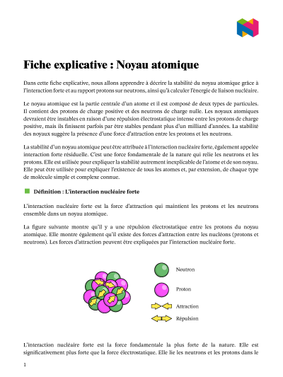 Dans cette leçon, nous allons apprendre à décrire la stabilité du noyau atomique à partir de la force d'interaction nucléaire et du rapport entre les protons et les neutrons, et à calculer l'énergie de liaison nucléaire.