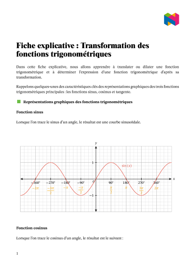 Dans cette leçon, nous allons apprendre à appliquer une translation ou une dilatation à une fonction trigonométrique, et à déterminer l'expression d'une fonction trigonométrique étant donnée la transformation.