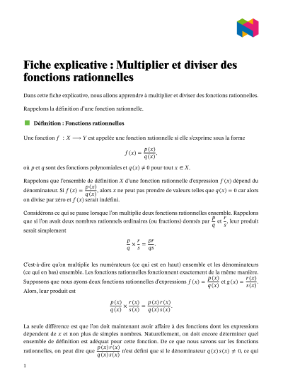 Dans cette leçon, nous allons apprendre comment multiplier et diviser des fonctions rationnelles.