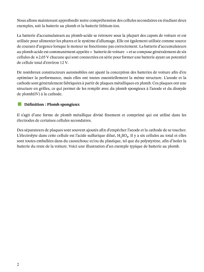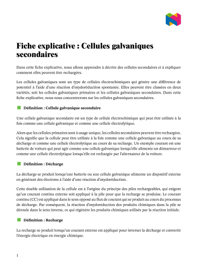 Dans cette leçon, nous allons apprendre à décrire des cellules secondaires, et à expliquer comment elles peuvent être rechargées.