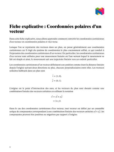 Dans cette leçon, nous allons apprendre comment convertir les coordonnées cartésiennes d'un vecteur en coordonnées polaires et vice-versa.