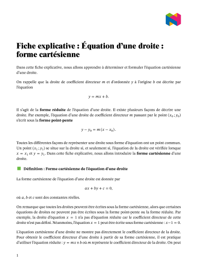 Dans cette leçon, nous allons apprendre comment déterminer et écrire l'équation cartésienne d'une droite.