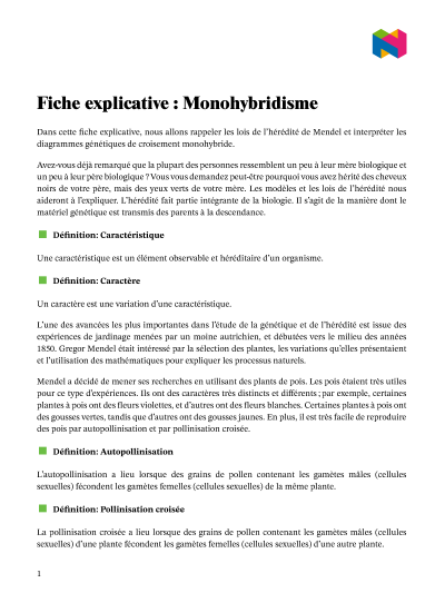 Dans cette leçon, nous allons rappeler les lois de l’hérédité de Mendel et interpréter les diagrammes génétiques de croisement monohybride.