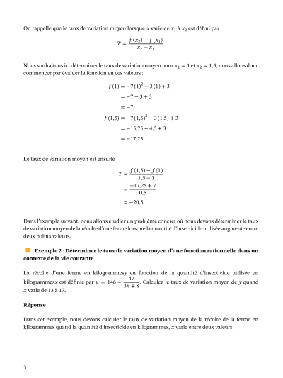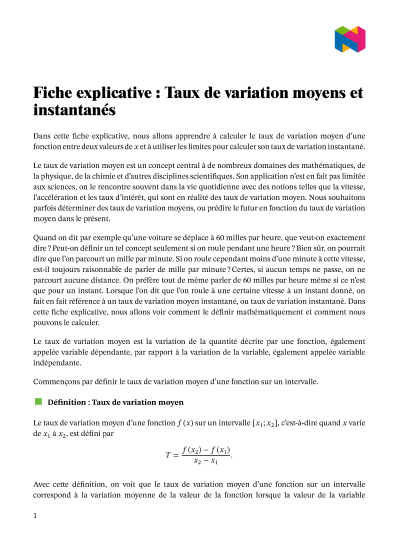 Dans cette leçon, nous allons apprendre à déterminer le taux de variation moyen d'une fonction entre deux valeurs de 𝑥, et à utiliser les limites pour déterminer le taux de variation instantané.