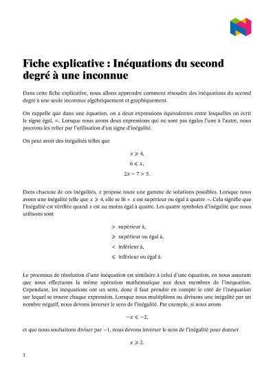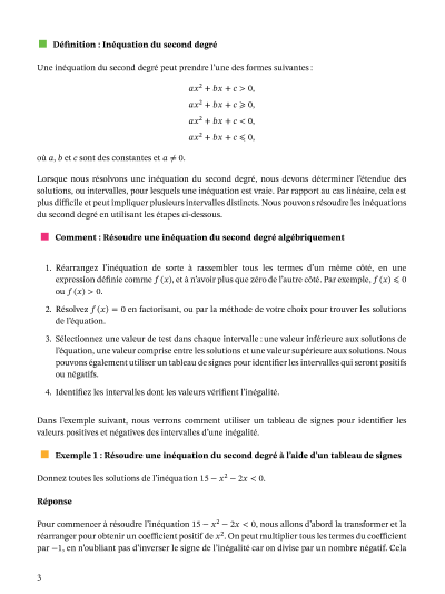 Dans cette leçon, nous allons apprendre comment résoudre des inéquations du second degré à une seule inconnue algébriquement et graphiquement.