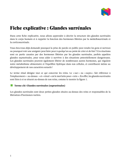 Dans cette leçon, nous allons apprendre à décrire la structure des glandes surrénales dans le corps humain, et rappeler la fonction des hormones secrétées par la médullaire et le cortex.