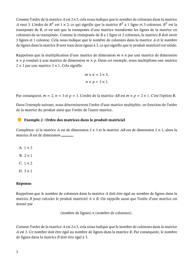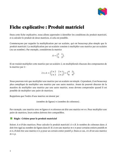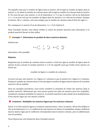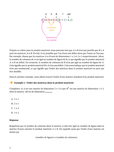 Dans cette leçon, nous allons apprendre à identifier les conditions du produit matriciel, et à calculer le produit de deux matrices, si cela est possible.