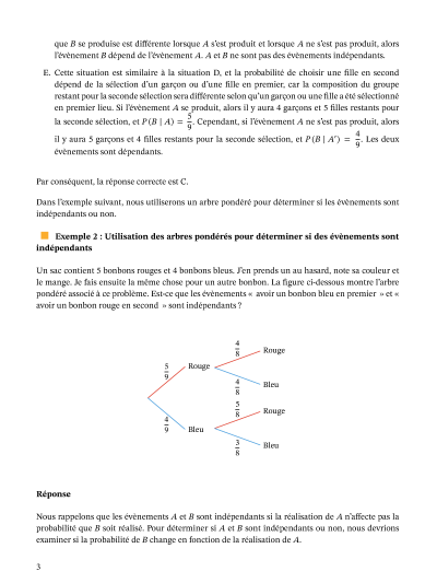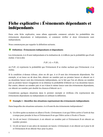 Dans cette leçon, nous allons apprendre comment calculer les probabilités des évènements dépendants et indépendants, et comment vérifier si deux évènements sont indépendants.
