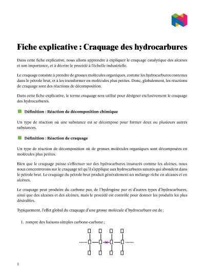 Dans cette leçon, nous allons apprendre à expliquer le craquage catalytique des alcanes et son importance, et à décrire le procédé à l’échelle industrielle.