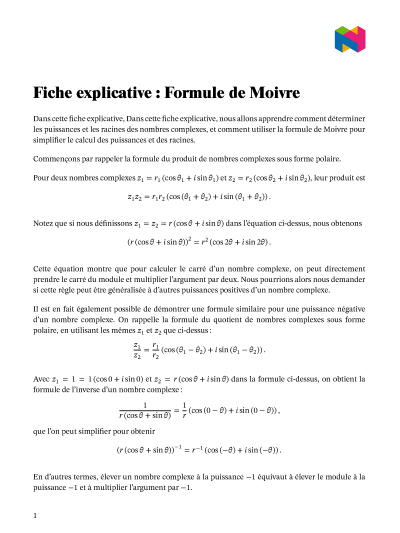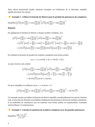 Dans cette leçon, nous allons apprendre comment déterminer les puissances et les racines des nombres complexes, et comment utiliser la formule de Moivre pour simplifier le calcul des puissances et des racines.