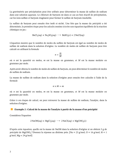 Dans cette leçon, nous allons apprendre comment déterminer la masse ou la composition d’un analyte à l’aide de la gravimétrie par précipitation.