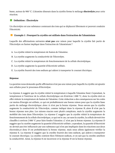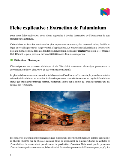 Dans cette leçon, nous allons apprendre comment décrire l’extraction de l’aluminium à partir de son minerai en utilisant l'électrolyse.