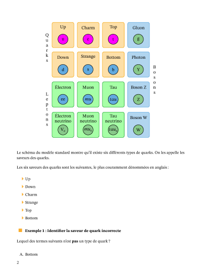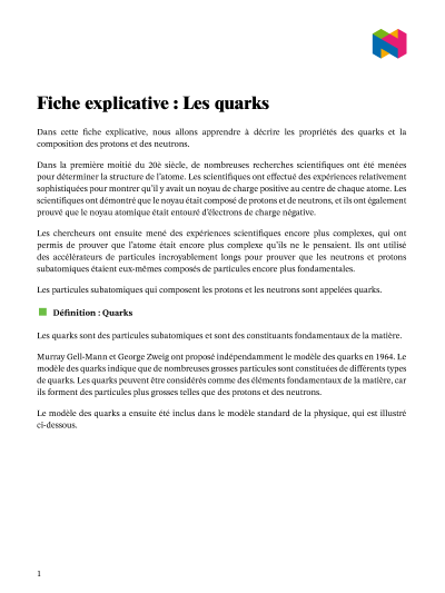 Dans cette leçon, nous allons apprendre comment décrire les propriétés des quarks et la composition des protons et des neutrons.