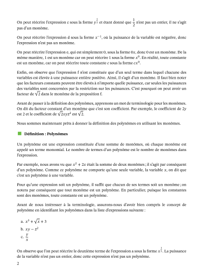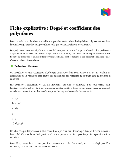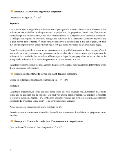 Dans cette leçon, nous allons apprendre comment déterminer le degré d'un polynôme, et comment employer la terminologie associée aux polynômes, telle que les termes, les coefficients et les constantes.