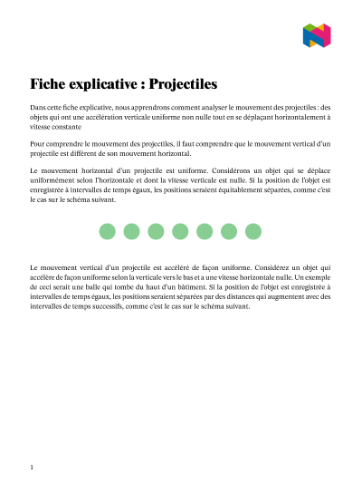 Dans cette leçon, nous allons apprendre comment analyser le mouvement de projectiles, définis en tant qu’objets présentant une accélération verticale uniforme n’étant pas nulle et se déplaçant horizontalement à une vitesse constante.