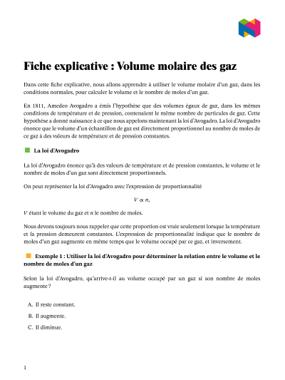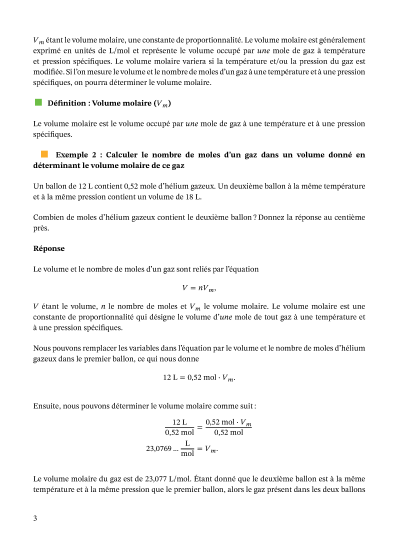 Dans cette leçon, nous allons apprendre à utiliser le volume molaire d’un gaz, dans les conditions standard, pour calculer le volume et le nombre de moles d’un gaz.