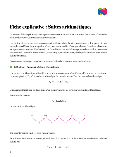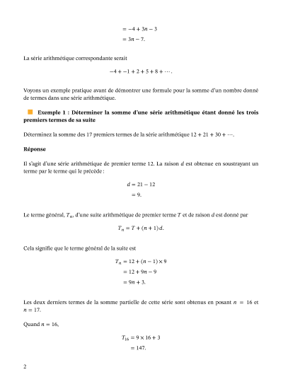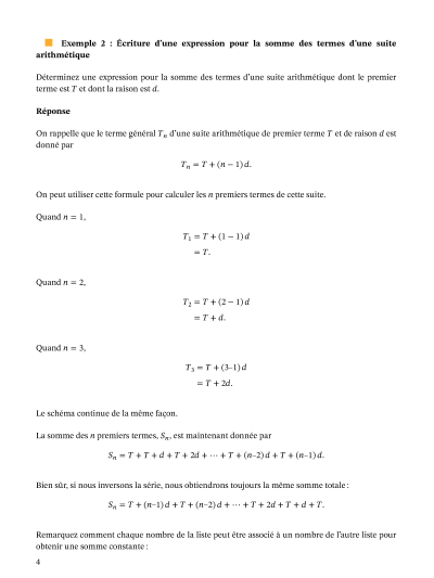Dans cette leçon, nous allons apprendre comment calculer la somme des termes d'une suite arithmétique ayant un nombre défini de termes.