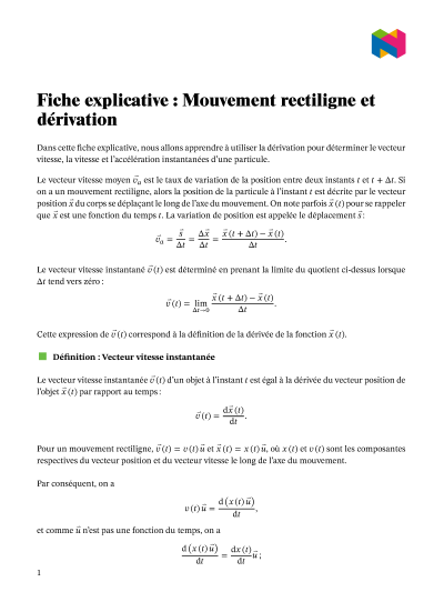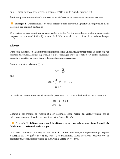 Dans cette leçon, nous allons apprendre comment utiliser la dérivation pour déterminer le vecteur vitesse instantanée, la vitesse et l'accélération d'une particule.