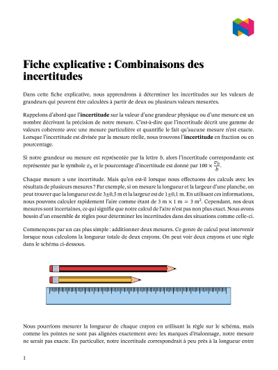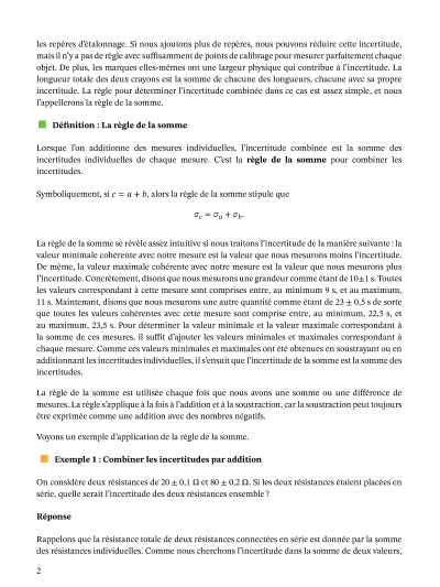 Dans cette leçon, nous allons apprendre comment déterminer les incertitudes sur des grandeurs qui sont calculées à partir de deux ou plusieurs valeurs mesurées.