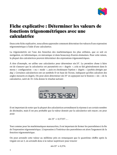 Dans cette leçon, nous allons apprendre comment déterminer les valeurs d'une fonction trigonométrique à l'aide d'une calculatrice.