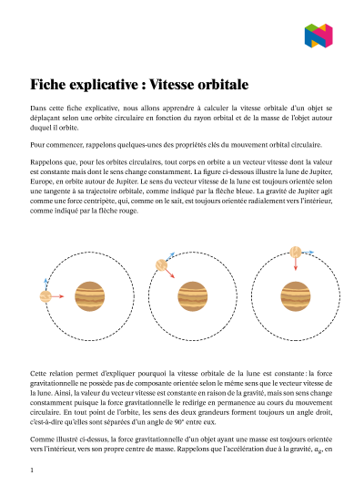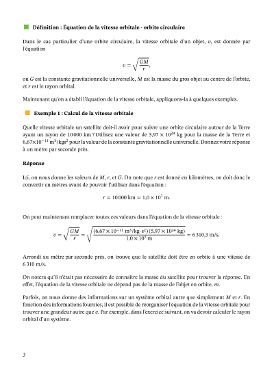 Dans cette leçon, nous allons apprendre comment calculer la vitesse orbitale d'un objet se déplaçant sur une orbite circulaire étant donné son rayon orbital et la masse de l'objet sur lequel il tourne.