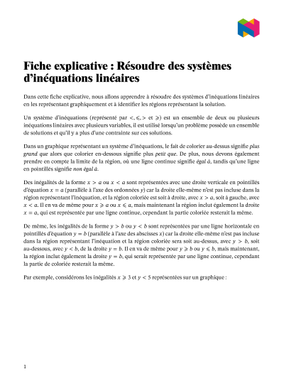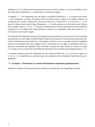 Dans cette leçon, nous allons apprendre à résoudre des systèmes d'inéquations linéaires en les représentant graphiquement, et à identifier les régions représentant la solution.