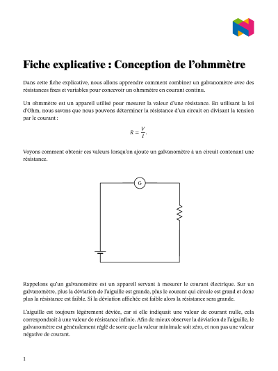 Dans cette leçon, nous allons apprendre comment combiner un galvanomètre avec des résistances fixes et variables pour concevoir un ohmmètre à courant continu.