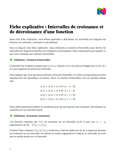 Dans cette leçon, nous allons apprendre à déterminer les intervalles sur lesquels une fonction est croissante, constante ou décroissante.