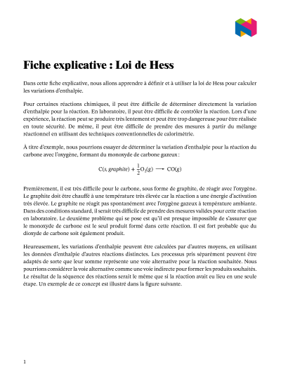 Dans cette leçon, nous allons apprendre comment définir et utiliser la loi de Hess pour calculer les variations de l’enthalpie.