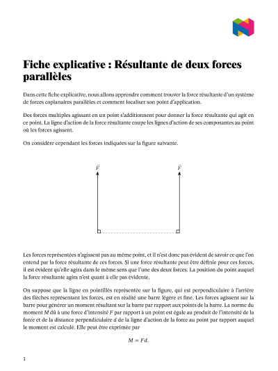 Dans cette leçon, nous allons apprendre à déterminer la résultante d'un système de forces coplanaires parallèles, et à repérer son point d'action.