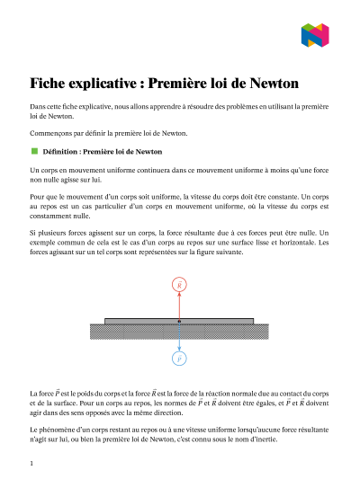 Dans cette leçon, nous allons apprendre comment résoudre des problèmes en utilisant la première loi de Newton.