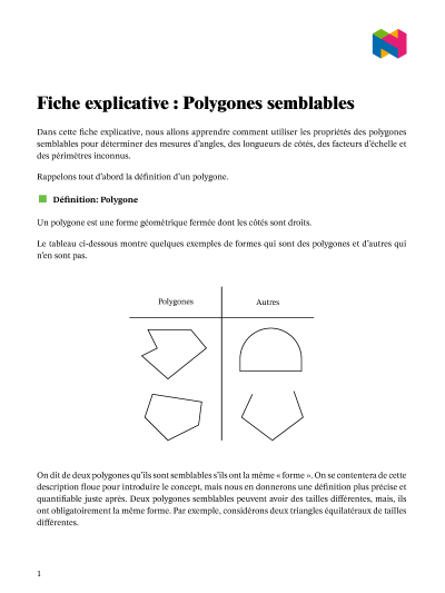 Dans cette leçon, nous allons apprendre comment utiliser les propriétés des polygones semblables pour déterminer des mesures d'angles, des longueurs de côtés, des facteurs d'échelle et des périmètres inconnus.
