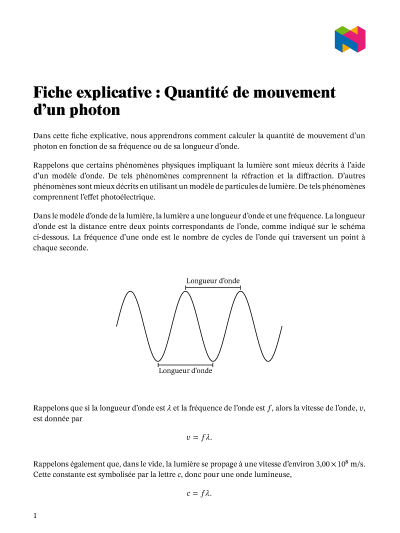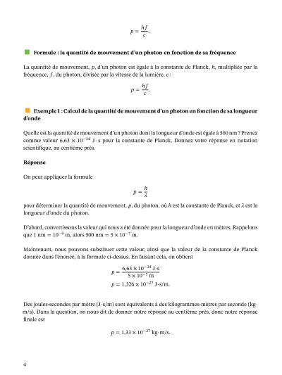 Dans cette leçon, nous allons apprendre comment calculer la quantité de mouvement d'un photon étant donné sa fréquence ou sa longueur d'onde.