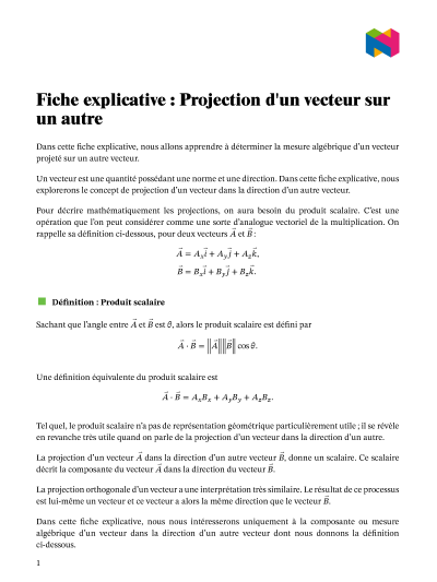 Dans cette leçon, nous allons apprendre comment déterminer la mesure algébrique d'un vecteur projeté sur un autre vecteur.