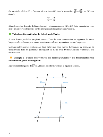 Dans cette leçon, nous allons apprendre comment utiliser le parallélisme des droites pour déterminer la longueur inconnue d'un segment dans une droite sécante coupée par des droites parallèles.