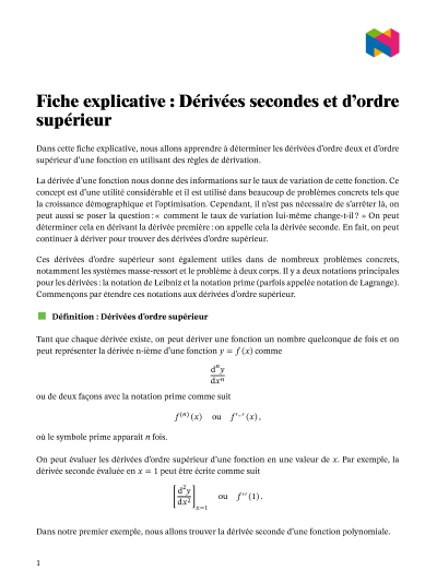 Dans cette leçon, nous allons apprendre comment déterminer les dérivées secondes et d'ordre supérieur d'une fonction, en utilisant les règles de dérivation.