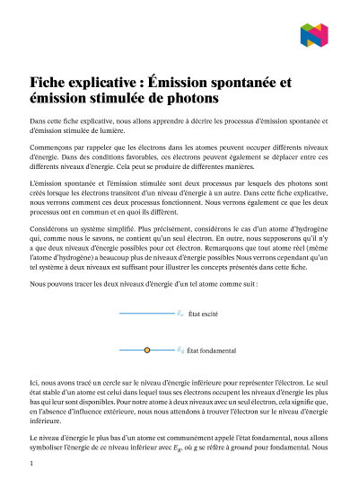 Dans cette leçon, nous allons apprendre comment décrire les processus d’émission spontanée et d’émission stimulée de lumière.