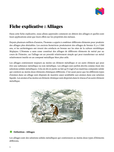 Dans cette leçon, nous allons apprendre comment décrire la formation et les applications des alliages, ainsi que leurs effets sur les propriétés des métaux.