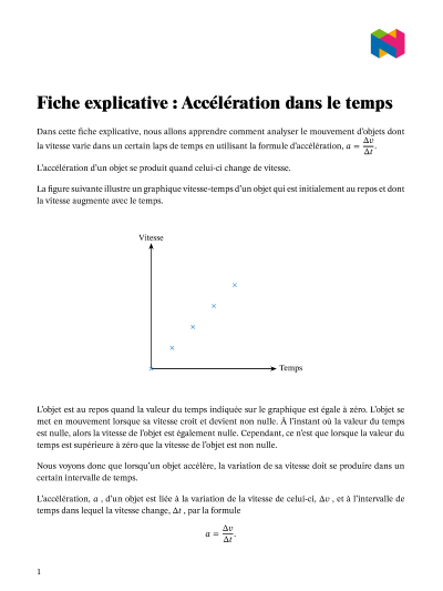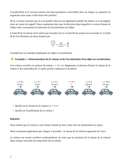 Dans cette leçon, nous allons apprendre comment analyser le mouvement d'objets dont la vitesse varie dans un certain laps de temps en utilisant la formule d'accélération, a = ∆v/∆t.