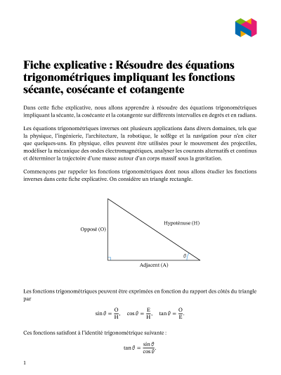 Dans cette leçon, nous allons apprendre comment résoudre des équations trigonométriques impliquant les fonctions sécante, cosécante et cotangente sur différents intervalles en degrés et radians.