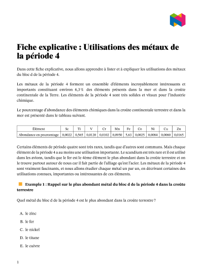 Dans cette leçon, nous allons apprendre à lister et expliquer les utilisations des métaux du bloc d de la période 4.