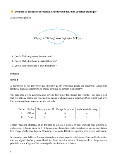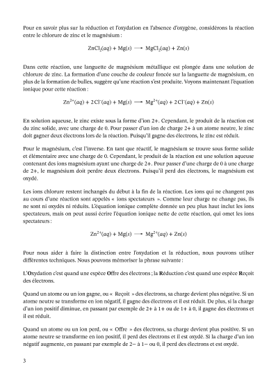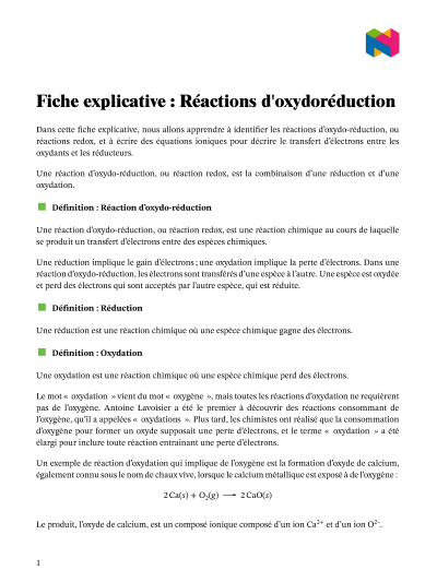 Dans cette leçon, nous allons apprendre comment identifier les réactions d’oxydoréduction, et écrire des équations ioniques pour décrire le transfert d’électrons entre les réducteurs et les oxydants.