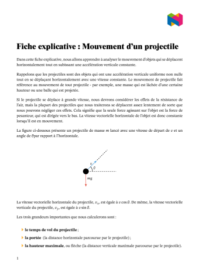 Dans cette leçon, nous allons apprendre comment analyser le mouvement d’objets qui se déplacent horizontalement tout en subissant une accélération verticale constante.