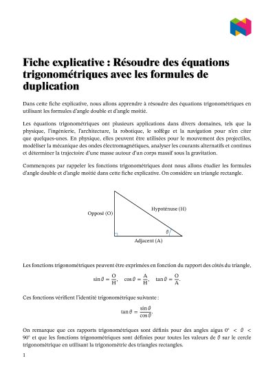 Dans cette leçon, nous allons apprendre comment résoudre des équations trigonométriques en utilisant les formules de duplication.